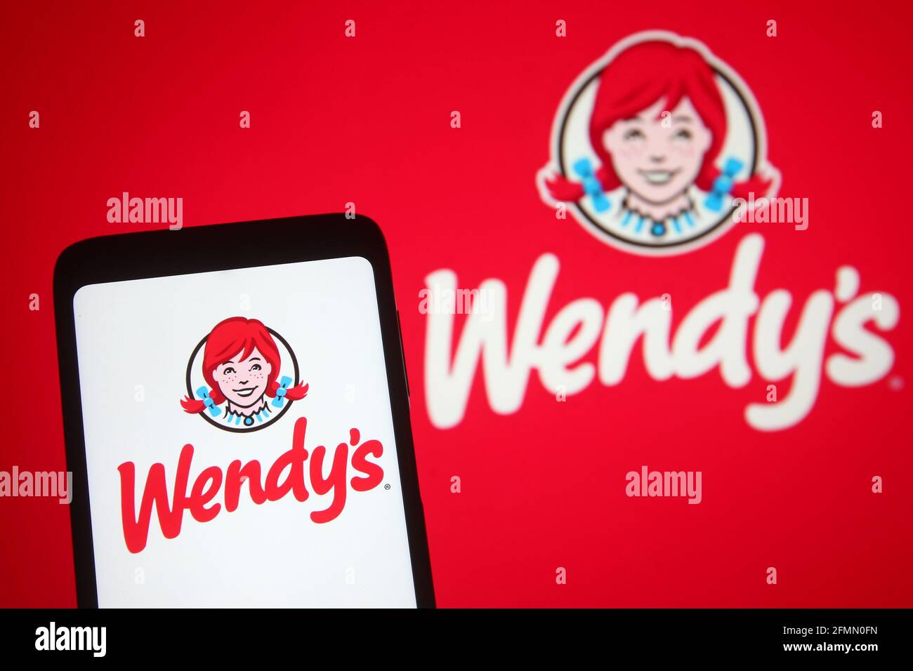 In This Photo Illustration The Wendy S Logo Of An Us International Fast Food Restaurant Chain Is Seen On A Smartphone And A Pc Screen Photo By Pavlo Gonchar Sopa Images Sipa Usa